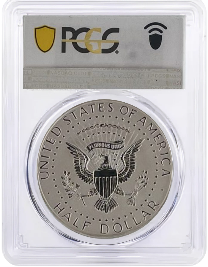 - Obverse features a left-facing portrait of John F. Kennedy in reverse proof format.